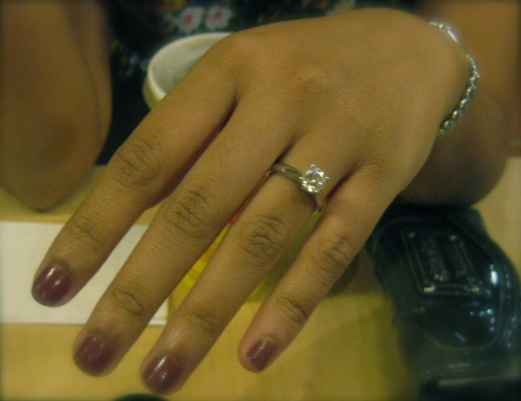 She flew home to see him, not suspecting what was in store for her. He said they were having dinner at Lighthouse Restaurant. She said it was too expensive, why don’t they just eat at Gerry’s. He told her he had already made reservations and not to protest anymore. She still did not suspect. When they got there, the chef knew him. She wondered why. She still did not suspect. Their table was bedecked in a special table cloth. And there was some sort of design on it. She still did not suspect. Then after some wine, he excused himself to go to the men’s room. When he came back, it was not to their table, but to sing a couple of songs with the restaurant’s band. One of those songs is their theme song “That’s All.” She still did not suspect. He has a nice voice, so the customers clamor for more, but he says no then walks towards her. And gets down on one knee. And asks her to marry him. And the tears stream down her face, and words can’t get out of her mouth. And he asks her to answer. And finally, she says yes. And the restaurant erupts in cheers.