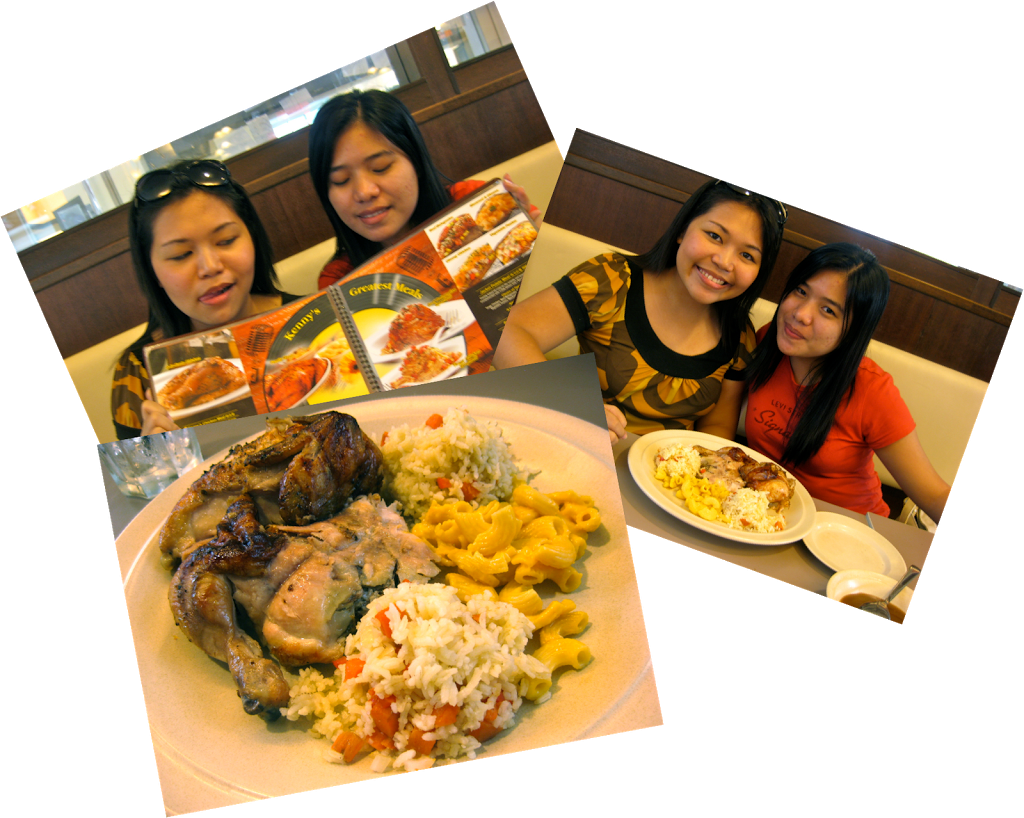 We had a late lunch at Kenny Rogers and shared a plate of half a roasted chicken with three side dishes among the three of us. We were disappointed at how small the servings of the side dishes were and at the taste of the mac and cheese – it was so dry! The softdrinks were bottomless but the Coke was too sweet (I thought the taste was supposed to be standard?). The chocolate muffin had raisins, something Cate and I hate. And the service was awful. The waiters couldn’t understand simple English and were too slow. They didn’t even provide us with eating utensils till we asked for it.