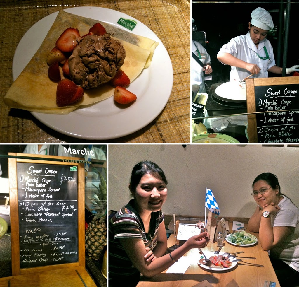 Maya arrived just as we were finishing the last strings of pasta and we gave her the last slice of pizza. We collected our bill and left to look for a dessert place. There was no queue anymore at Marche, so I suggested going there for sweet crepes. The moment we walked in and they saw the adorable decor, their faces lit up with awe and I knew that coming here was the right decision. We were handed our cards and led to our table and they were so excited that they just plonked their stuff on the table and whizzed around. Maya ordered a Caesar salad and the three of us split my favorite – crepe with strawberries and swiss chocolate ice cream. We happily finished the sweet in two shakes of a lamb’s tail but stayed for hours after just talking even though I had a migraine coming on and Maya was clearly sleepy. We only left because we wanted to be able to catch the last trains home.