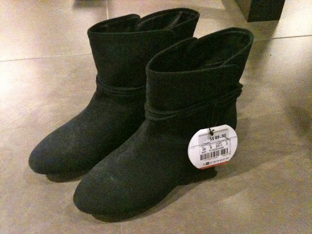 The movie was still at 4:40 pm, so we headed to 313 Somerset to look for a birthday gift for Tatsie’s friend. When we stepped into Zara, I tried on the booties that I had fallen in love with since the first time I saw them but didn’t buy because I only buy shoes below the S$50 range. “They look really nice, don’t they?” I asked Cate when I had managed to find her and Tatsie at the far end of the store. “Go buy!” she said. It was the exact same thing she told me about these same booties when I first pointed them out to her weeks ago. I still couldn’t, though, so I took them off and put them back, but not before snapping a picture.