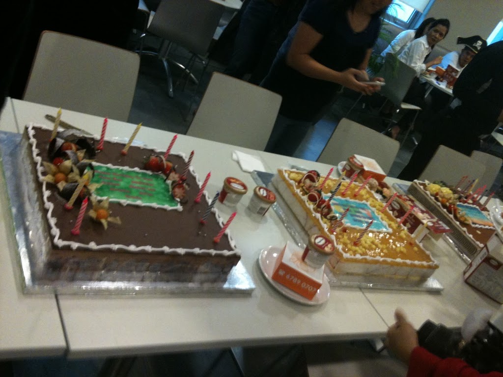 There was so much food – Sakae sushi, assorted pastries, Haagen Dazs ice cream (the Belgium chocolate flavor was uber yum!), and loads of birthday cake. Too bad I couldn’t stay longer to eat as my fund updates were not yet done by then and I had to nip back to my desk. Well at least I had a break!