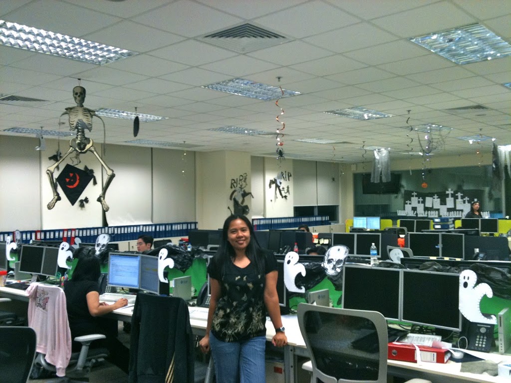 At 5pm we gathered in the pantry for food, monthly birthday cakes, and announcement of the halloween contests’ winners. I’m not really sure who won the decorations contest…err. But our HR head Nic won best costume. She moved too fast so I wasn’t able to get a picture of her in her pirate costume. The FTB guys won best-dressed team.