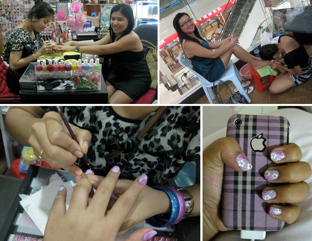 We left the restaurant and prepared to walk home but we spotted an open mall. So in we went and Cate saw that manicures and pedicures were a lot cheaper here than in Singapore, so next thing you know:
