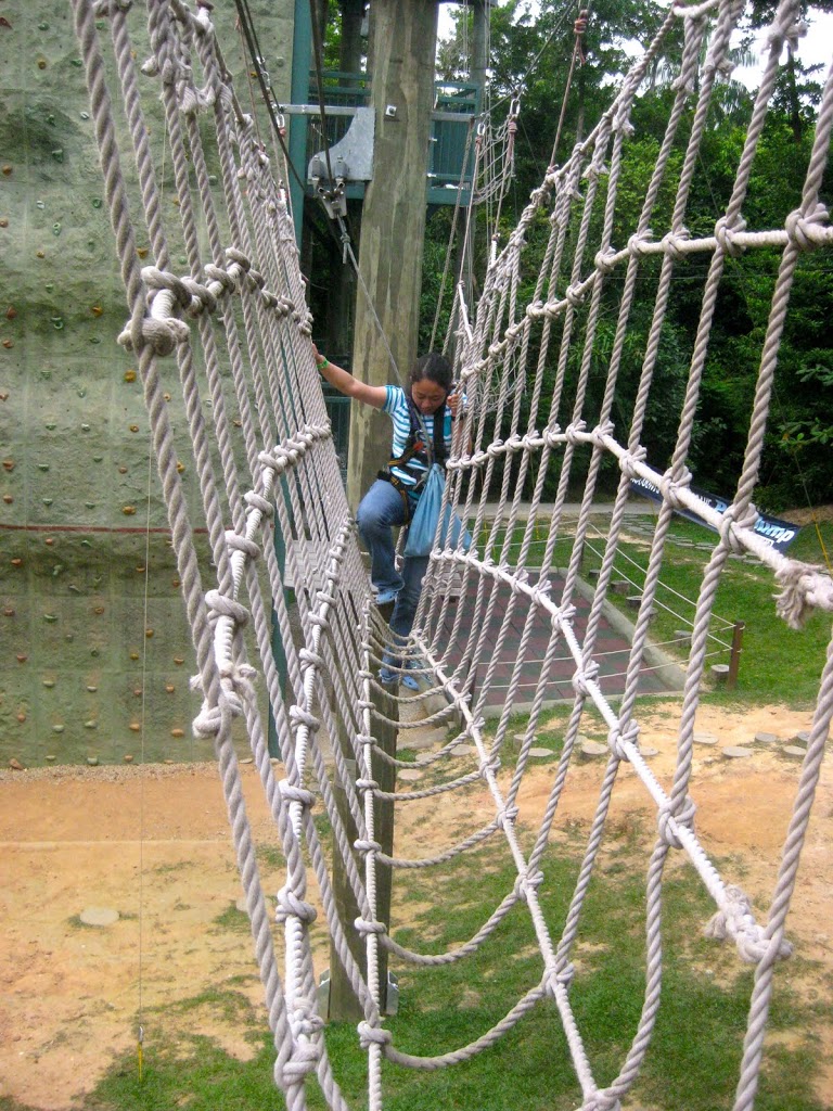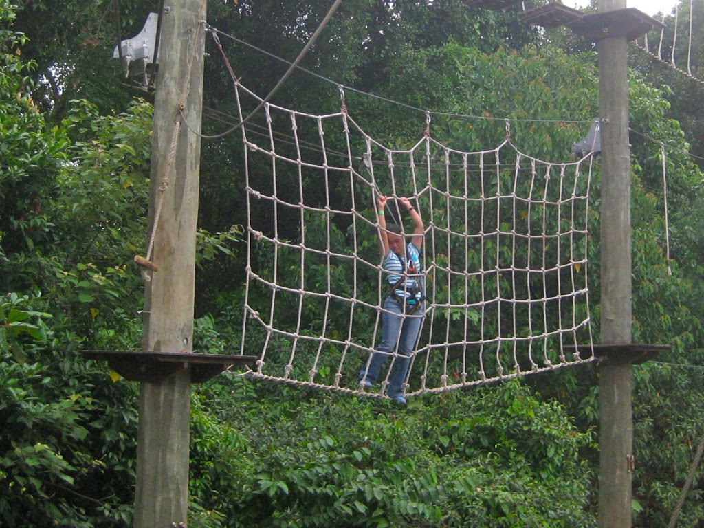 After that point, all my fears fell away and I trusted my harness completely. The only problem I had was the rope burns that hurt my hands and the upper body tiredness that forced me to rest at each station. I walked through a few more rope and ladder bridges and a plank with seesaws on them.
