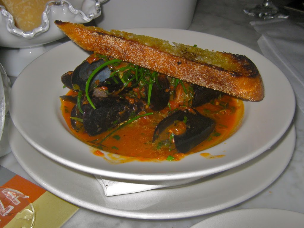 After that they served the antipasti, two dishes of cheese and mussels, then our two main entrees, pasta dishes that the waitress thoughtfully suggested could be divided into three plates for us so that we could taste more than one dish. We had actually intended to do just that, but having them already divide it for us made it so much easier.