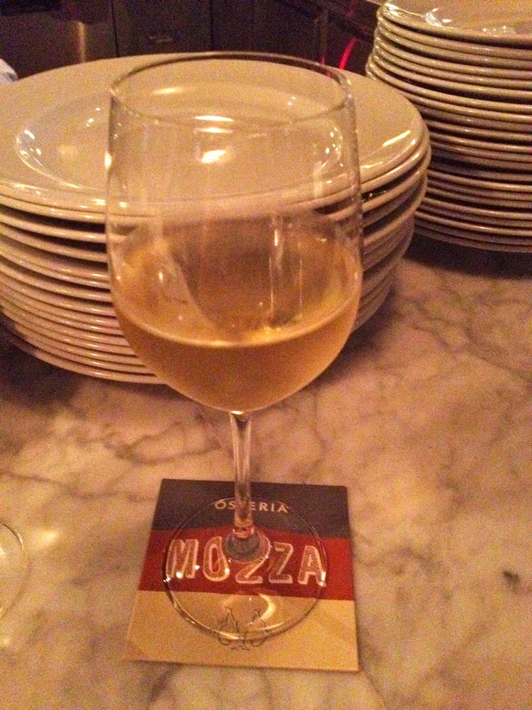 Our wine, a glass of Bastianich Friulano – Friuli, was served first. I’m no wine connoisseur so I can’t say if it was good wine but it tasted fine to me, though I still prefer the rose wine over white.
