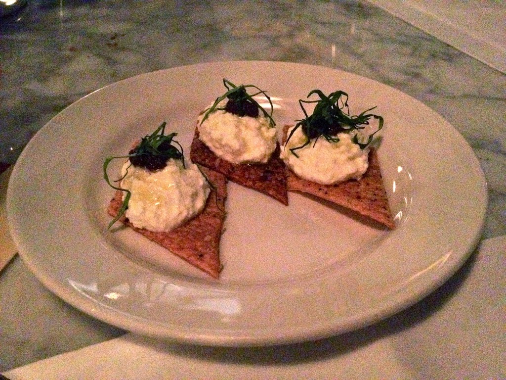 We were then given some bread with small saucers of olive oil and balsamic vinegar to dip them into. Then they served a small platter of appetizers, compliments of the house.