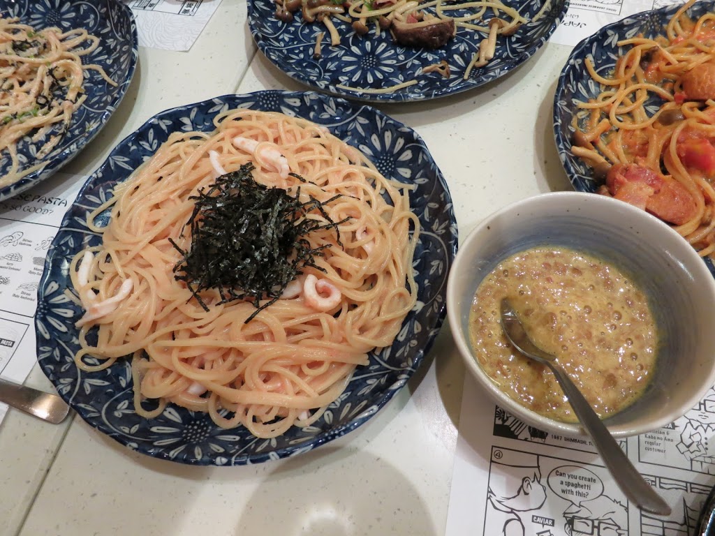 We ordered four pasta dishes and one pizza and they were quite good. I especially loved the pizza. So delicious! My favorite pasta was the one with bacon and shoyu sauce. I hate wasabi so I wasn’t too crazy about the one with wasabi sauce.