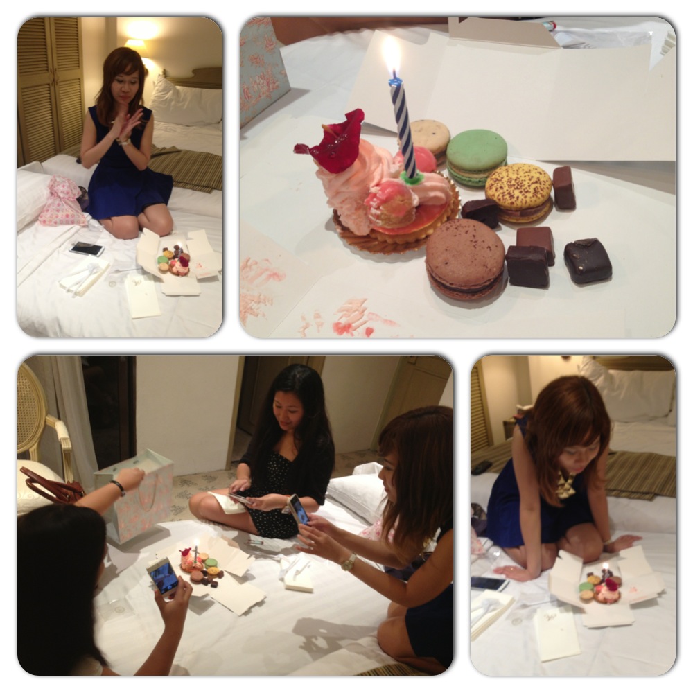 After finishing our meal, we decided to hang out at out hotel room, but not before taking a detour at Antoinette, where we bought a mini cake, macarons and chocolates which we later turned into Arlyn’s “birthday cake.”