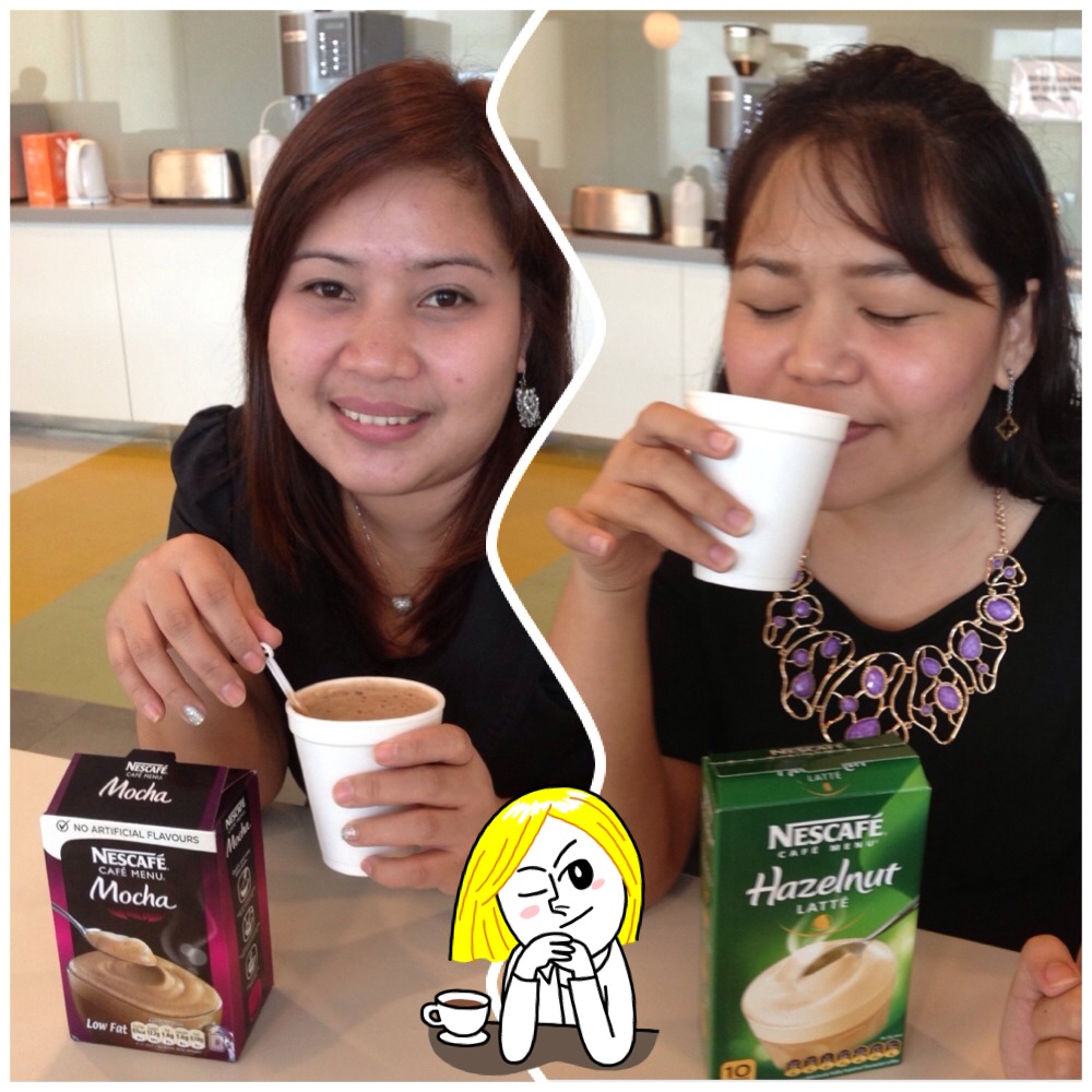 Look at me, enjoying the delicious aroma of hazelnut latte! Feeling like an actress for an ad. LOL! But it really does smell good though. I notice that is always the case with nut-based coffees, like when Starbucks does their Christmas toffee nut lattes.