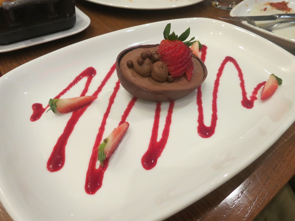 We were hankering for dessert, so we ordered one for sharing. The waitress asked if they could use raspberry sauce instead of whipped cream as they had run out (it was already very late), and we agreed. It worked well! The mousse was delightful, but Betchie was slightly disappointed with the chocolate shell. I have to give props for its appearance, though. So pretty!