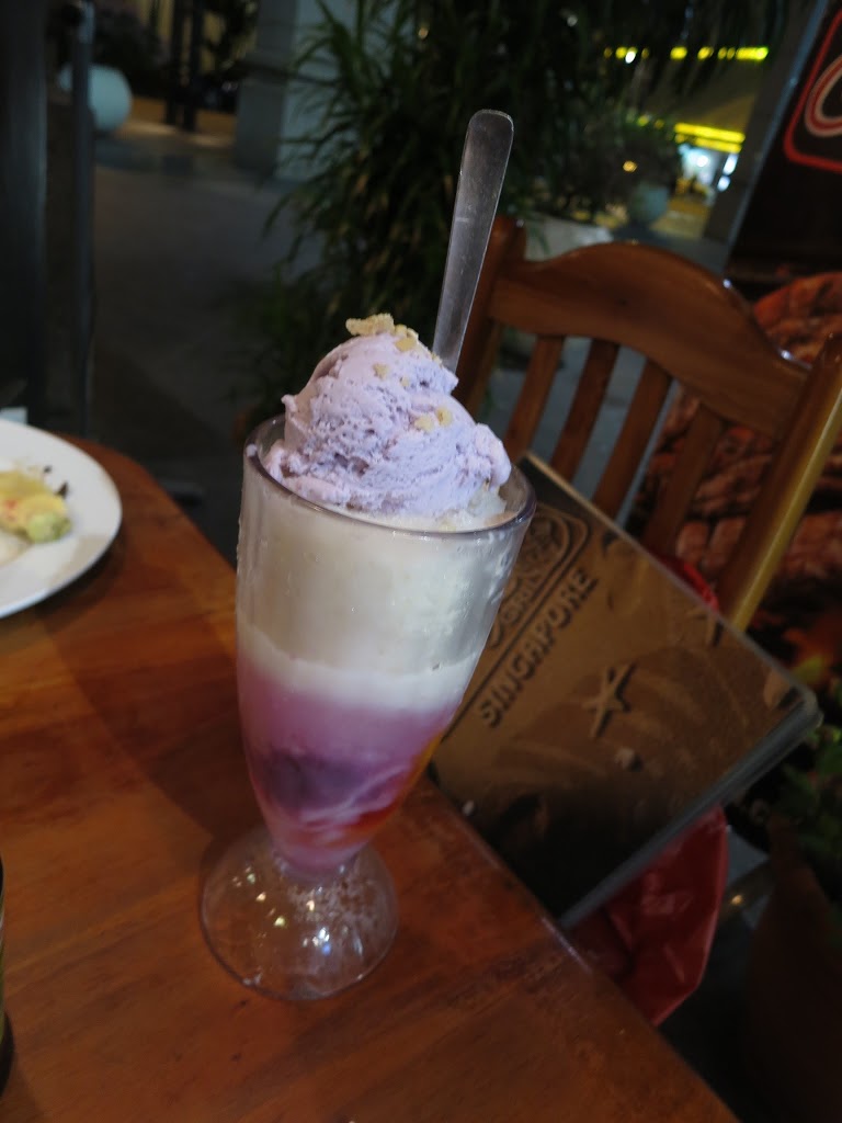 This dessert was the reason we all came here in the first place. Even though I thought it weird that the ube (yam) ice cream was lighter in color than normal, I loved it! Halo-halo is the most popular summer dessert in the entire Philippines, made of shaved ice topped with beans, fruits, leche flan (custard), milk, sugar, and ice cream. You mix every thing all together before eating it. That’s how it got its name – halo means mix.