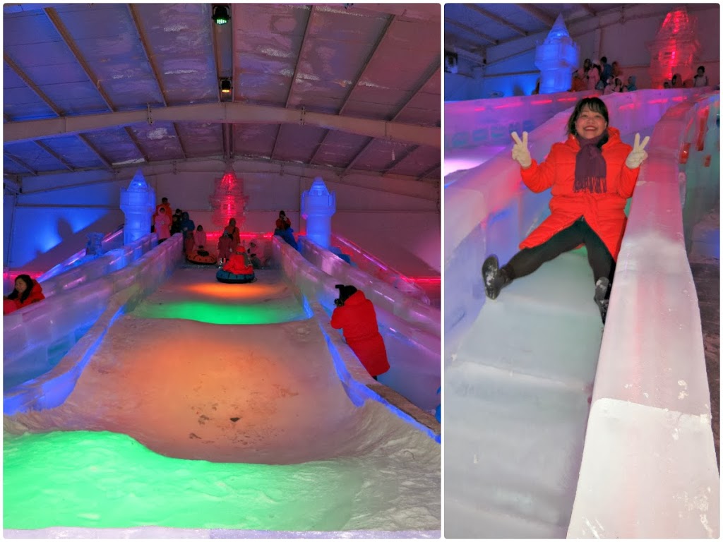 The most exciting part was the giant ice slide at the back. You can ride a tube down a huge slide or slide your ass down one of the two narrower slides on each side of it. We opted for the latter because there was a long queue for the tubes. It was so fun! Weeeeee! 😀