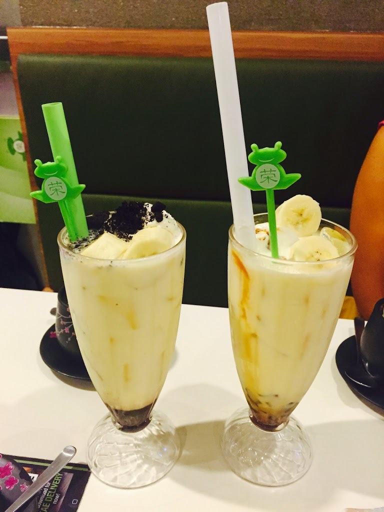 We joined a short queue before they led us to a table. They had lots of sushi plates going around on conveyor belts, so we helped ourselves to those, then ordered a few other things off the menu like hand rolled sushi (which is my fave kind), salmon, chawanmushi, and indulgent banana shakes. So yum!