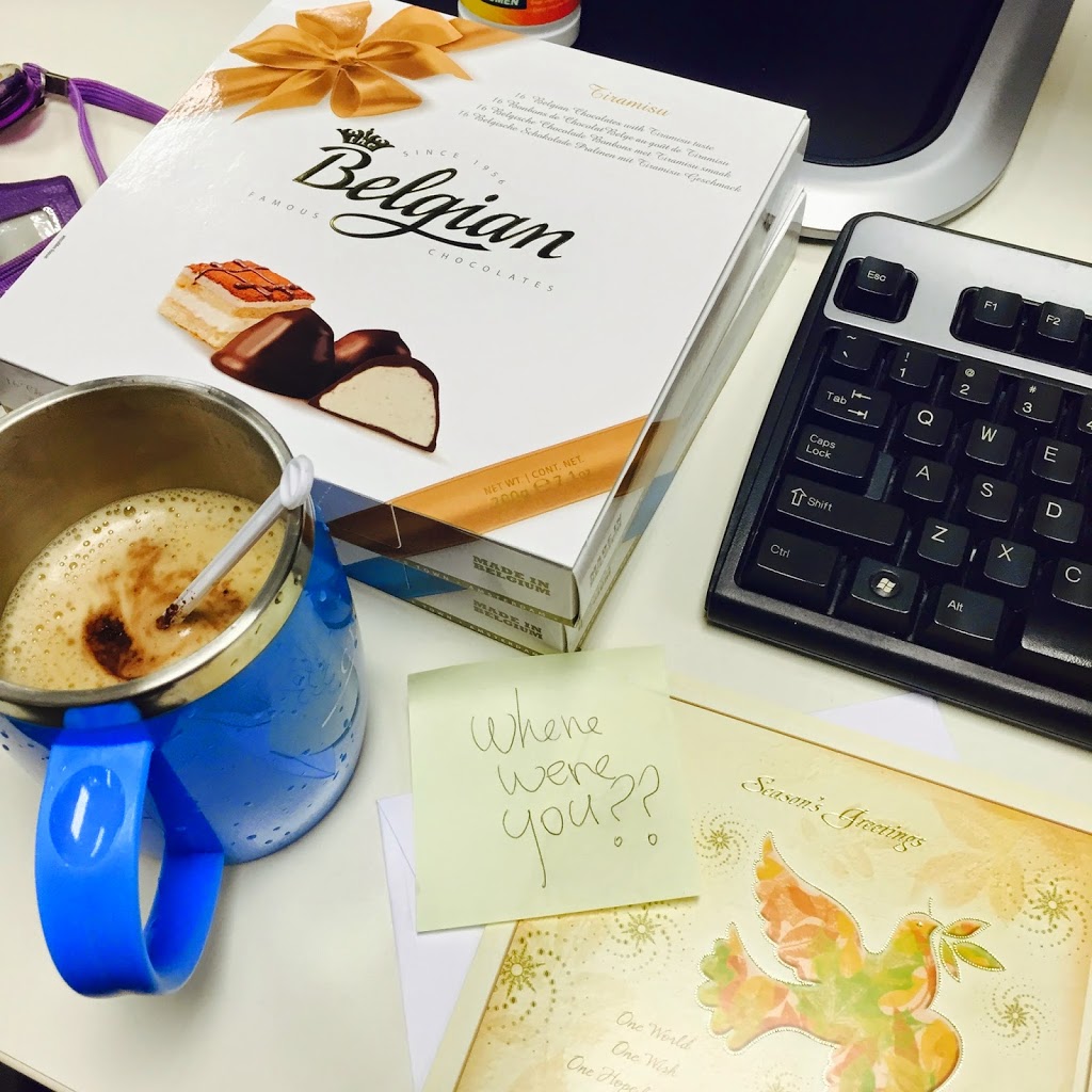 Aside from the two boxes of The Belgian Chocolates, there was a farewell card from my friend Nikki and a post-it note with the words “WHERE WERE YOU?” on my PC’s screen, an inside joke I had with my former team.
