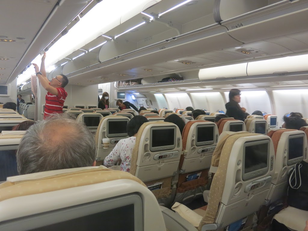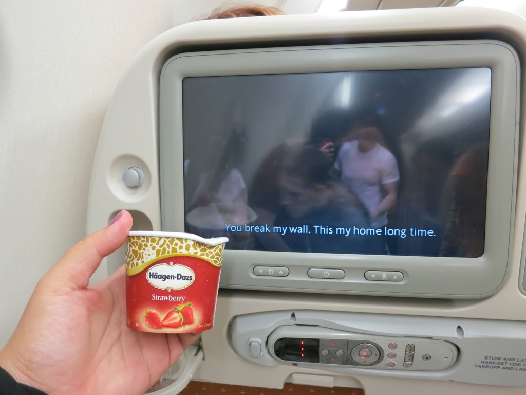 The plane was big, with three rows of seats and twice as long as the budget airline planes I’m normally used to. Each passenger had his own TV and a small pillow and thick blanket. There were lots of shows and movies to choose from, popular shows and new movies too.
