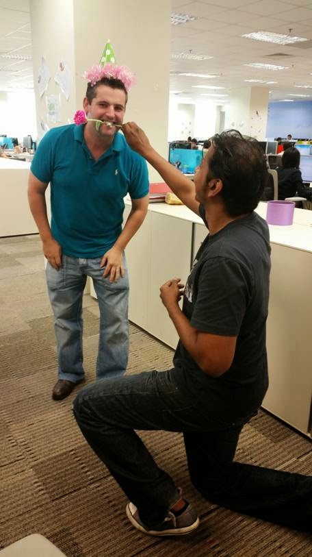 There was one activity which involved upper level management people making random surveys with questions like what would you wish for if you had 3 wishes, then they had to pose together for a picture. My teammate came up with this (I handed him the flower) and won a prize for best picture. 😀