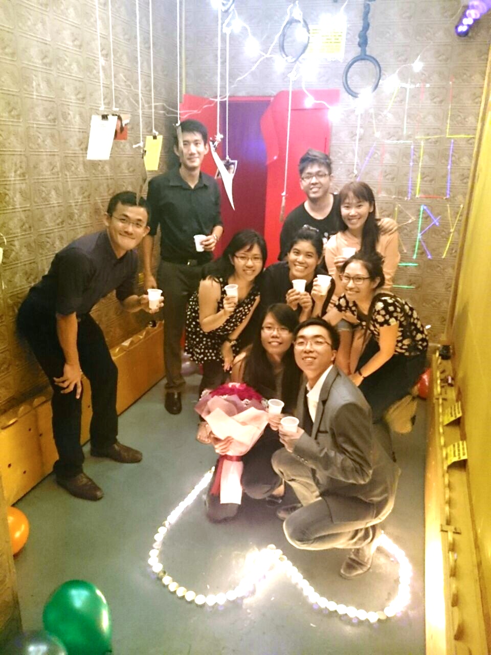 He got his girlfriend’s friends to invite her there and for 30 minutes they pretended to solve puzzles which they already knew how to solve beforehand.