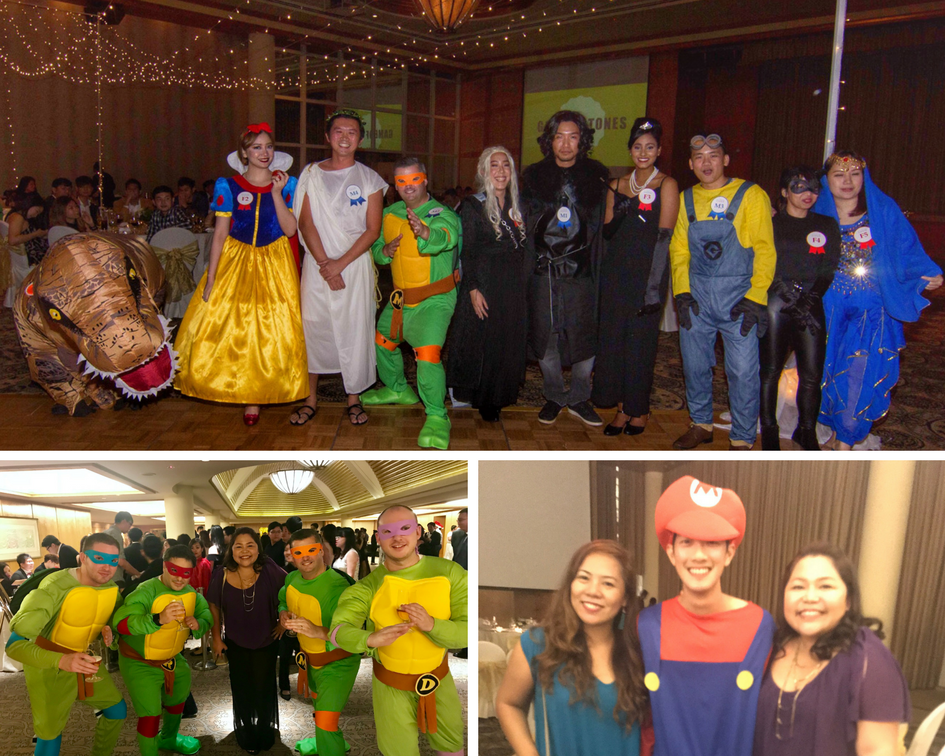 A band serenaded us, and a slideshow of pictures taken throughout the year was flashed on screen. Then the emcee asked the people who dressed up to come to the center stage beneath the lights and participate in some games.